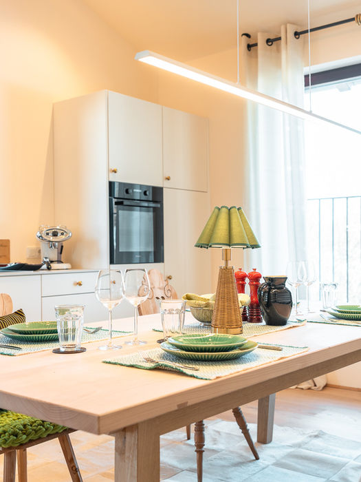 Im Maison öffnet sich ein Raum, der spüren lässt, wie viel Klarheit entsteht, wenn man den Dingen Weite gibt. Das Berglicht fällt großzügig ein und lässt den Blick fast mühelos bis zum Wilden Kaiser wandern. Der private Eingang und die schallgedämpften Wände schenken Ruhe. Die Küche - ausgestattet mit Herd, Kühlschrank, Geschirrspüler und all dem, was man braucht - lädt zu jenen stillen Ritualen ein, die den Tag ordnen.